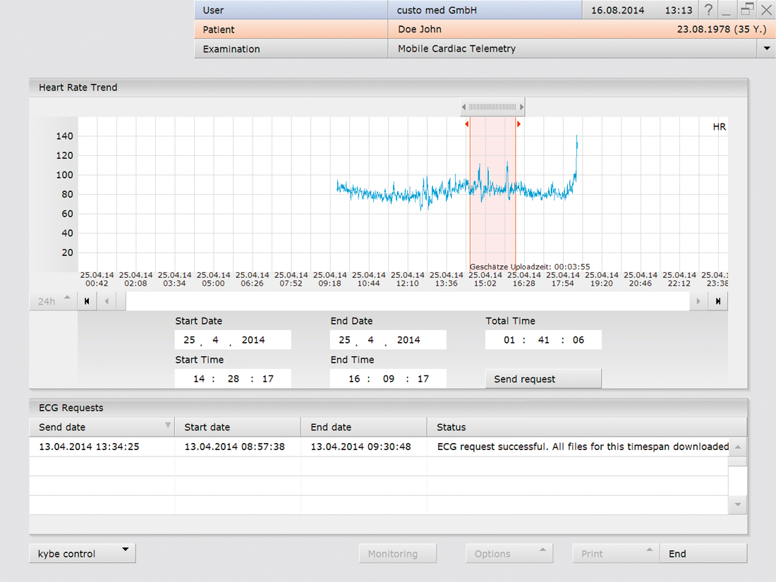 custo kybe kesintisiz olarak EKG kaydeder.custo kybe içerisindeki geriye dönük EKG kayıdı içerisinden seçilmiş zaman diliminde istenilen uzunlukta kısım bu fonksiyon yoluyla Çağrı merkezindeki custo kybe center'a iletilebilir ve incelenebilir.