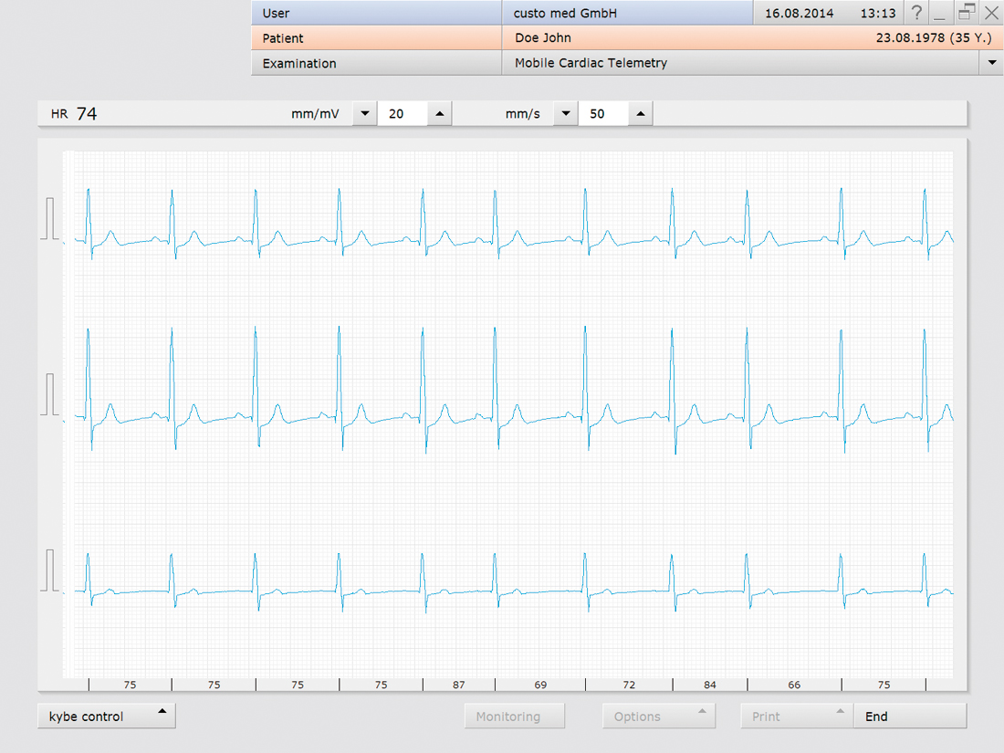 custo kybe bu fonksiyon ile gerçek zamanlı EKG’ yi kesintisiz olarak custo kybe center’a iletir ve sürekli görüntüler.