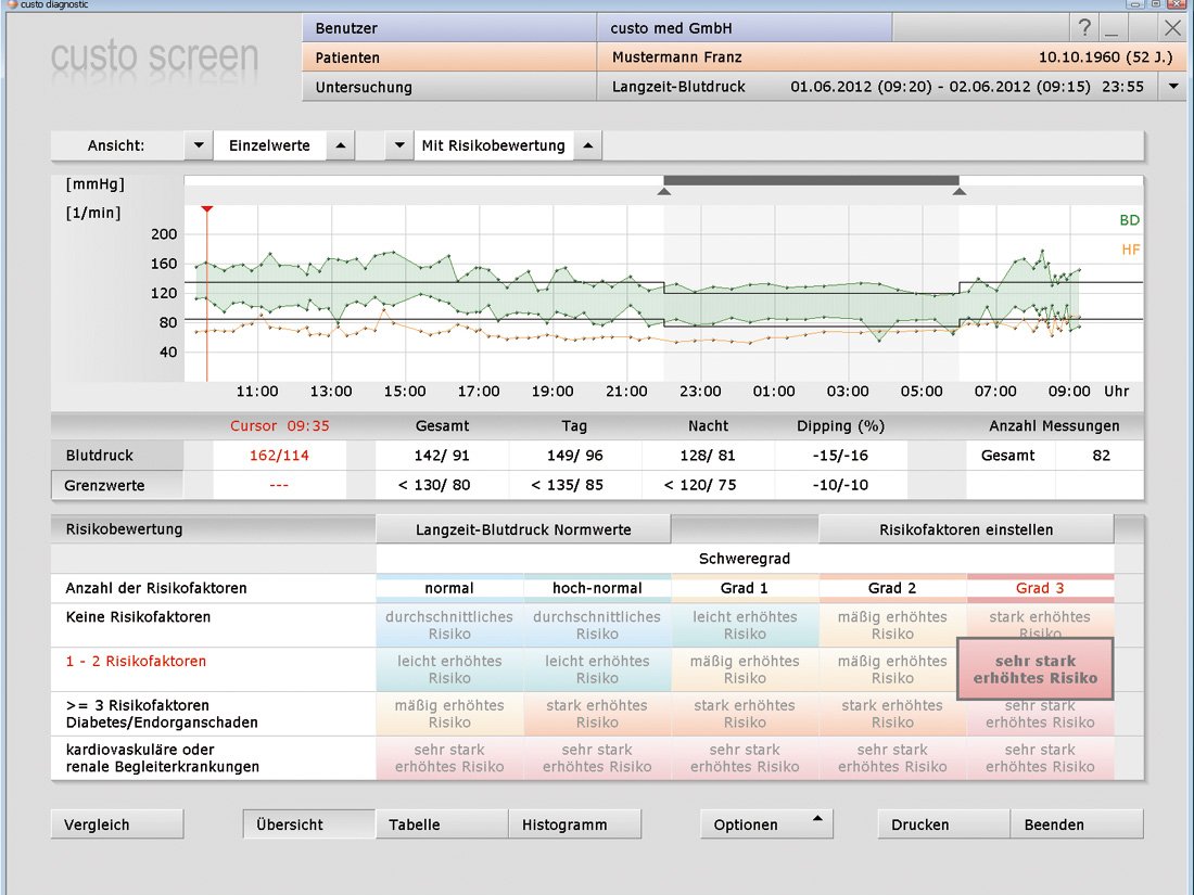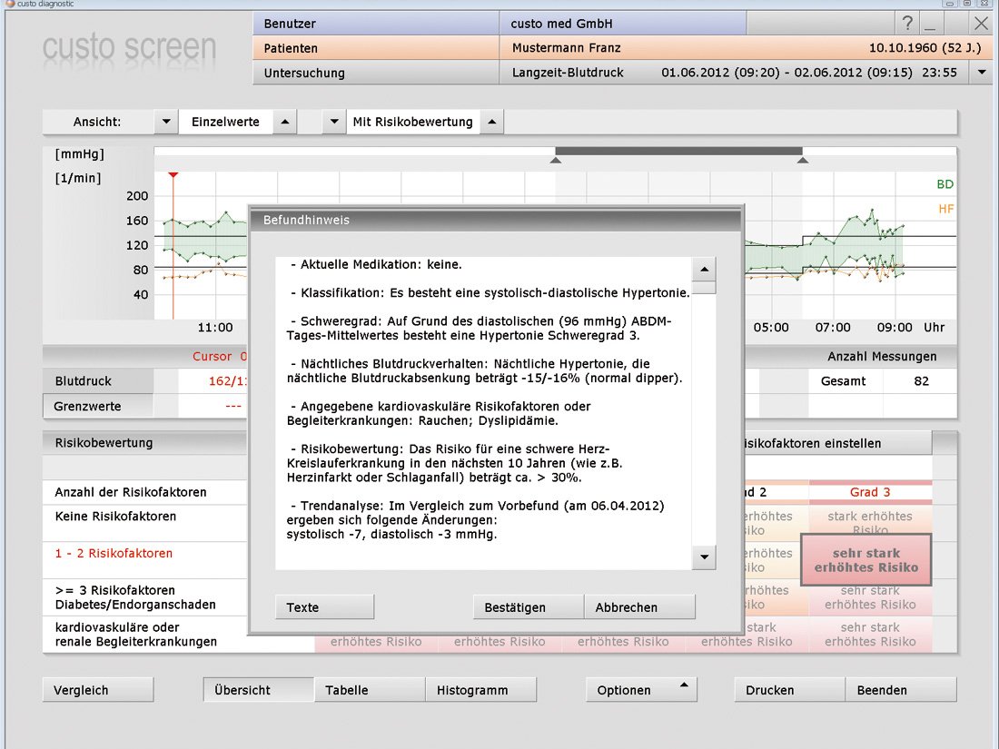 Uzun süreli tedavilerin değerlendirilmesi custo screen programı ile mümkündür. Hastanın tüm kayıtları zamana bağlı olarak sırasında yan yana karşılaştırılır. Herhangi bir zamanda tek bir değerlendirmeye ulaşmak mümkündür.