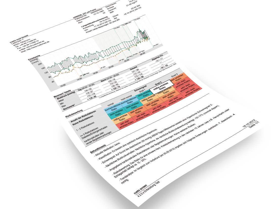 Bu ek modül kardiyovasküler risk faktörleri ile kan basıncı şiddetini kombine eder ve bu parametrelere göre hastanın bireysel riskini belirler. Kan basıncı şiddeti ve risk faktörlerinin sınıflandırılma tanımları Alman Hipertansiyon Derneğinin (DHL) güncel kılavuzlarına uygundur.