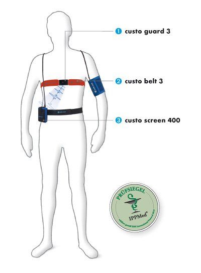 custo screen 400, Dünya çapında Avrupa Hipertansiyon Derneğinin (ESH-IP 2010 protokolü) bağlayıcı gereksinimlerine göre onaylanmış ilk ABPM kaydedici cihazdır.Tanı için Holter EKG ve Holter Tansiyonun eşzamanlı kayıt olanağı genişletimi mümkündür. custo holter ABPM sistemi, Holter EKG ve Holter Tansiyon eşzamanlı kayıtı için alanında en gelişmiş teknolojiyi kullanır. Sistem, artefaktlara ve hatalara neden olan EKG kabloları olmadan göğüs kemeri üzerinden kayıt imkanı ile hasta için yüksek taşıma konforu sağlar. custo holter ABPM sistemi verimlilik açısından üstündür, çünkü yapışkan elektrotlar ve EKG kabloları olmadan çalışır.