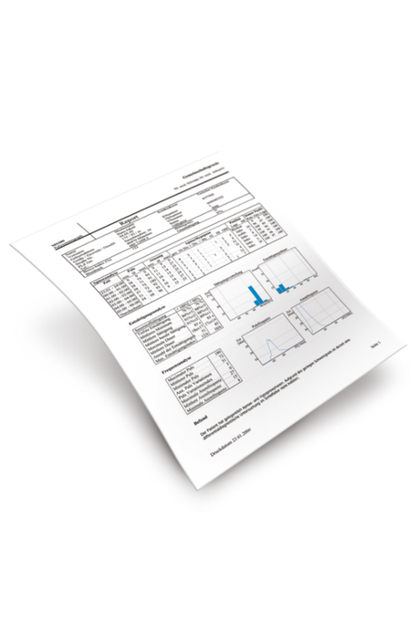 Tüm sonuçlar dökümantasyon için isteğe bağlı düzenlenebilir ve standart bir azıcıda bu şekilde düzenlenmiş rapor olarak basılabilir.